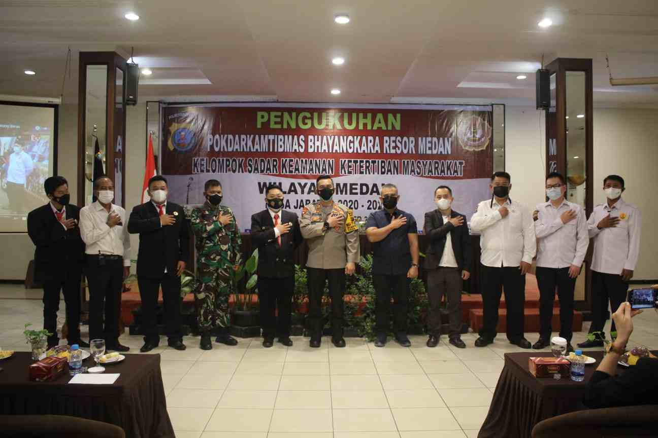 MEDAN | Konspirasi.net – Kelompok Sadar (Pokdar) Keamanan Ketertiban Masyarakat (Kamtibmas) Bhayangkara Resor Medan resmi dikukuhkan oleh Polrestabes Medan, Sabtu pagi 2 Oktober 2021, Pukul 10:00 Wib. Acara berlangsung di Garuda Hotel Plaza Jl. SM. Raja Medan dengan disiplin protokol kesehatan ketat.