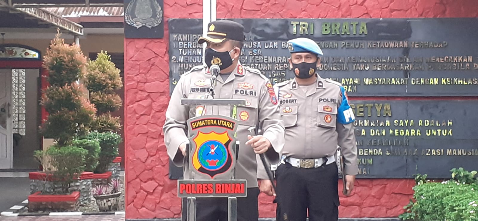 Mengucapkan terima kasih kepada personil TNI – POLRI atas kesiapannya dalam rangka melaksanakan pengamanan kunjungan Bapak Presiden Republik Indonesia Ir. H. Joko Widodo di kota Binjai,
