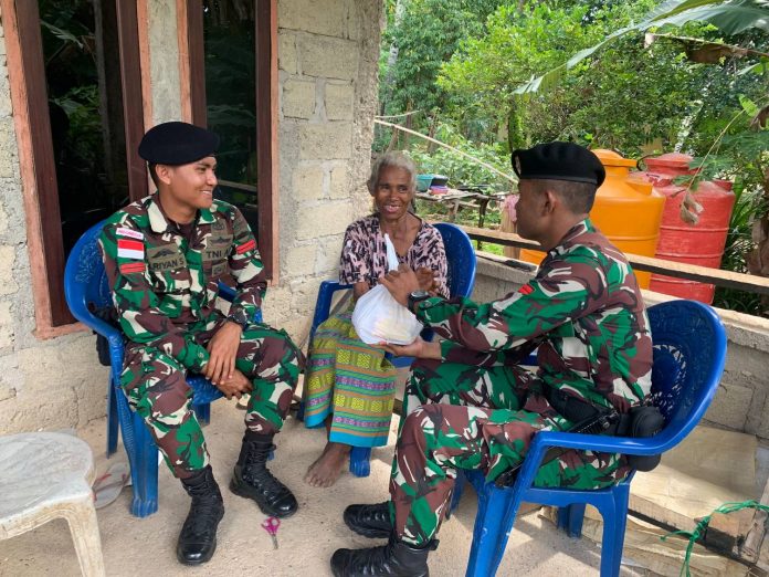 Konspirasi.net | Napan NTT – Perhatikan masyarakat yang ada di daerah perbatasan, Pos Napan Satgas Yonkav 6/Naga Karimata berbagi sembako kepada salah satu Masyarakat yang ada di Desa Napan, Kec. Bikomi Utara, Kab. TTU, Prov. NTT. (4/6/24)