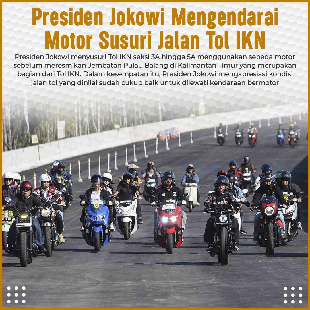 Konspirasi.net | Kalimantan Timur – Presiden Joko Widodo menyusuri Tol IKN seksi 3A hingga 5A menggunakan sepeda motor sebelum meresmikan Jembatan Pulau Balang di Kalimantan Timur yang merupakan bagian dari Tol IKN.