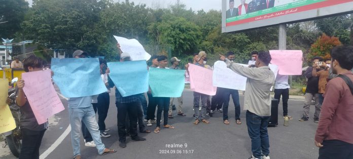 Konspirasi.net | Mandailing Natal – Puluhan massa mengatasnamakan Aliansi Mahasiswa dan Pemuda Pemantau Kebijakan Pemerintah (AMP2K) kembali turun ke jalan melakukan aksi demonstrasi menuntut penuntasan kasus hukum pidana PPPK Kab Madina tahun 2023 yang dinilai sarat masalah, praktek kecurangan, mal administrasi dan kental dengan aroma KKN (Korupsi, Kolusi, Nepotisme).