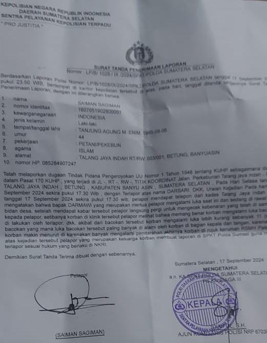 Kejadian pengeroyokan yang menyebabkan korban luka berat ini dilaporkan ke kantor Polda Sumsel, Selasa (17/9/2024). Pihak keluarga Saiman Sagiman sebagai pelapor meminta kepolisian untuk bisa menangkap dan menahan para pelaku.