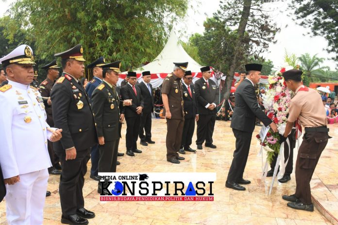 Upacara dipimpin Pj Gubsu, Dr Drs Agus Fatoni, MSi, dengan Perwira Upacara Letkol (K) Caj Dina Arwita, SSos, Komandan Upacara Dandim 0207/Sml, Letkol Inf Slamet Faojan, MHan, Pembaca Ikrar Ir Aldi Khoir, dan Pembaca Doa Kakanwil Kemenag Sumut.