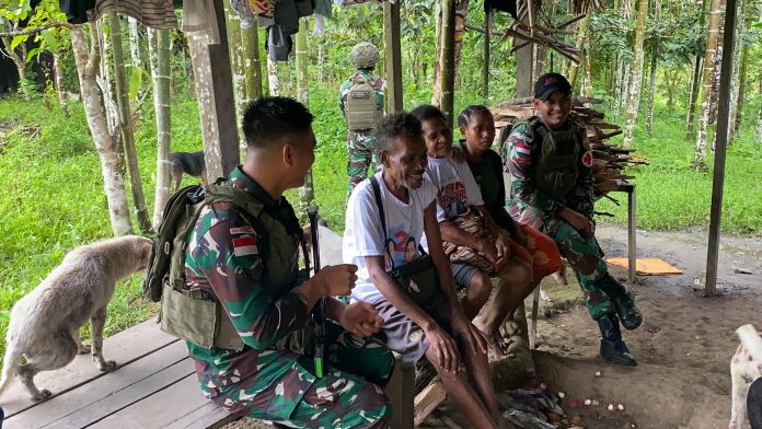 Konspirasi.net | Keerom – Untuk meningkatkan keakraban dan kekeluargaan serta membantu kesulitan yang dialami warga, Satgas Yonif 131/BRS Pos Kalibom melaksanakan anjangsana menemui warga sekaligus memberikan pelayanan kesehatan di Kampung Kalibom, Distrik Waris, Kab. Keerom, Papua, *Senin (06/01/2025).*