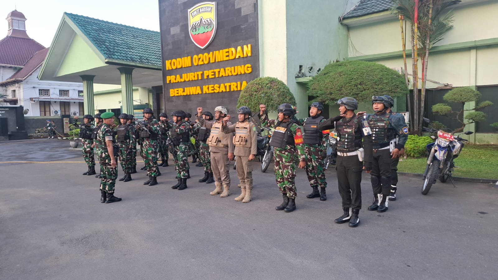 Mengambil apel di Makodim 0201/Medan dan dibagi dalam 3 tim, Personel Denpom I/5 Medan melakukan pengecekan dan membagi rute patroli yang telah ditentukan.