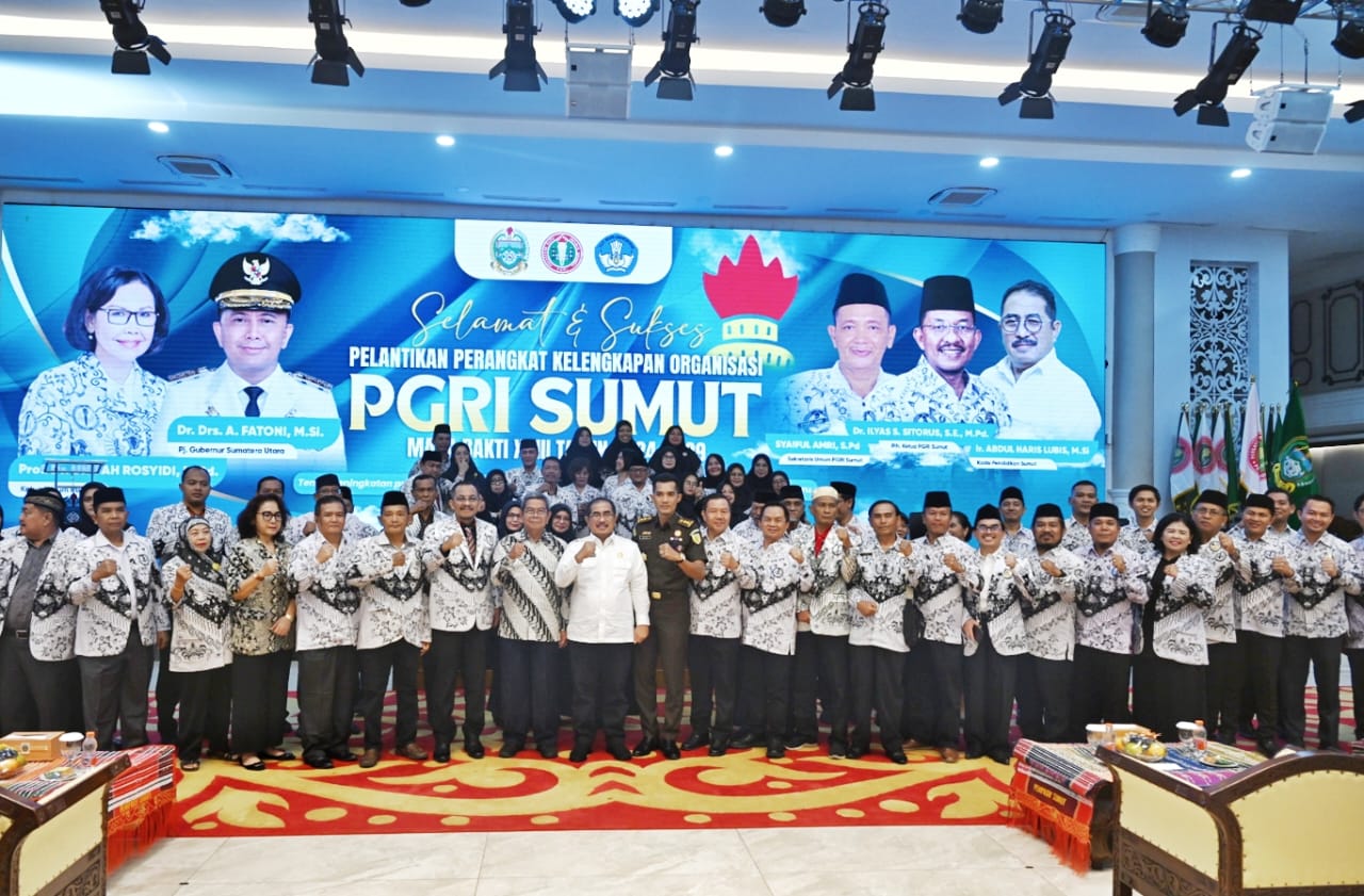 Konspirasi.net | Medan – Kepala Dinas (Kadis) Komunikasi dan Informatika (Kominfo) Sumatera Utara (Sumut) Ilyas Sitorus sekaligus Pelaksana Harian Ketua Persatuan Guru Republik Indonesia (PGRI) Sumut melantik perangkat kelengkapan organisasi PGRI Sumut masa bakti XXIII Tahun 2024-2029.