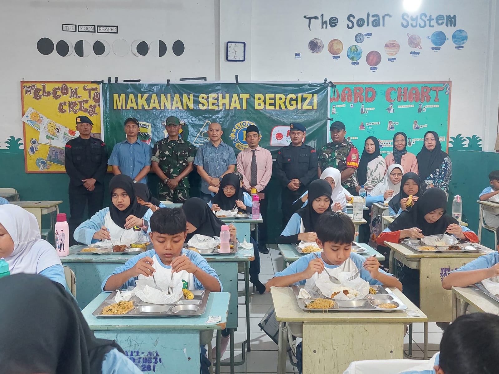 Selama kegiatan berlangsung, para siswa tampak antusias dan gembira menyantap makanan yang disajikan. Kehadiran pejabat TNI-Polri, perangkat kelurahan, kepala sekolah, serta para guru menunjukkan dukungan nyata terhadap upaya bersama dalam meningkatkan kesejahteraan masyarakat. (Tim)