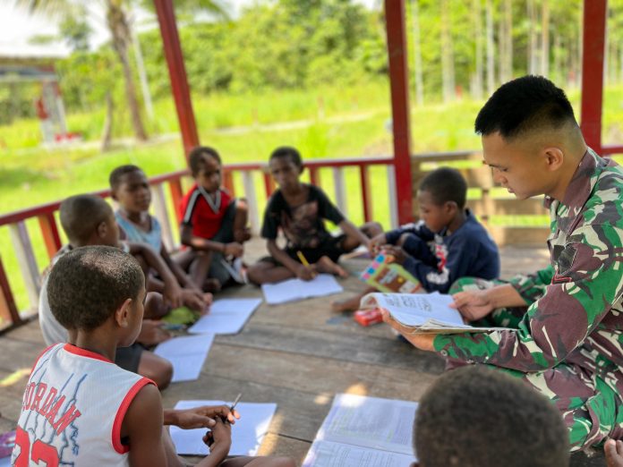 Konspirasi.net | Kab. Keerom – Kehadiran Satgas Pamtas RI-PNG Yonif 131/BRS bukan hanya memberikan rasa aman dan nyaman bagi masyarakat perbatasan, namun juga mampu membawa keceriaan dan kegembiraan bagi anak-anak kampung Mosso, Distrik Muara Tami, Provinsi Papua, Minggu (16/02/2025).