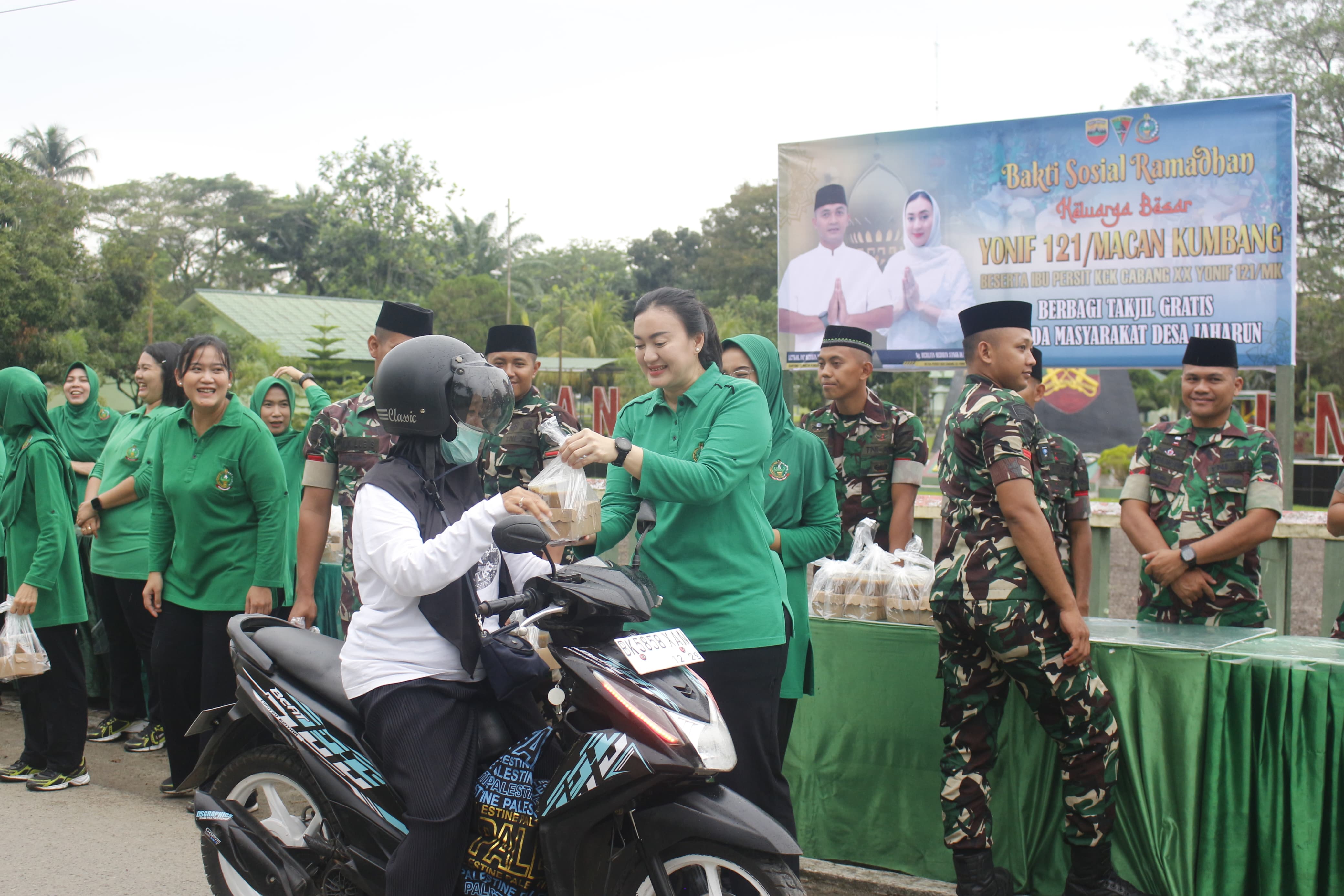 Konspirasi.net | Galang – Dalam rangka Bulan Suci Ramadhan yang penuh berkah, Prajurit dan Persit Yonif 121/ Macan Kumbang melaksanakan berbagi takjil kepada Masyarakat yang melintas dan tinggal di sekitar Mako Yonif 121/MK