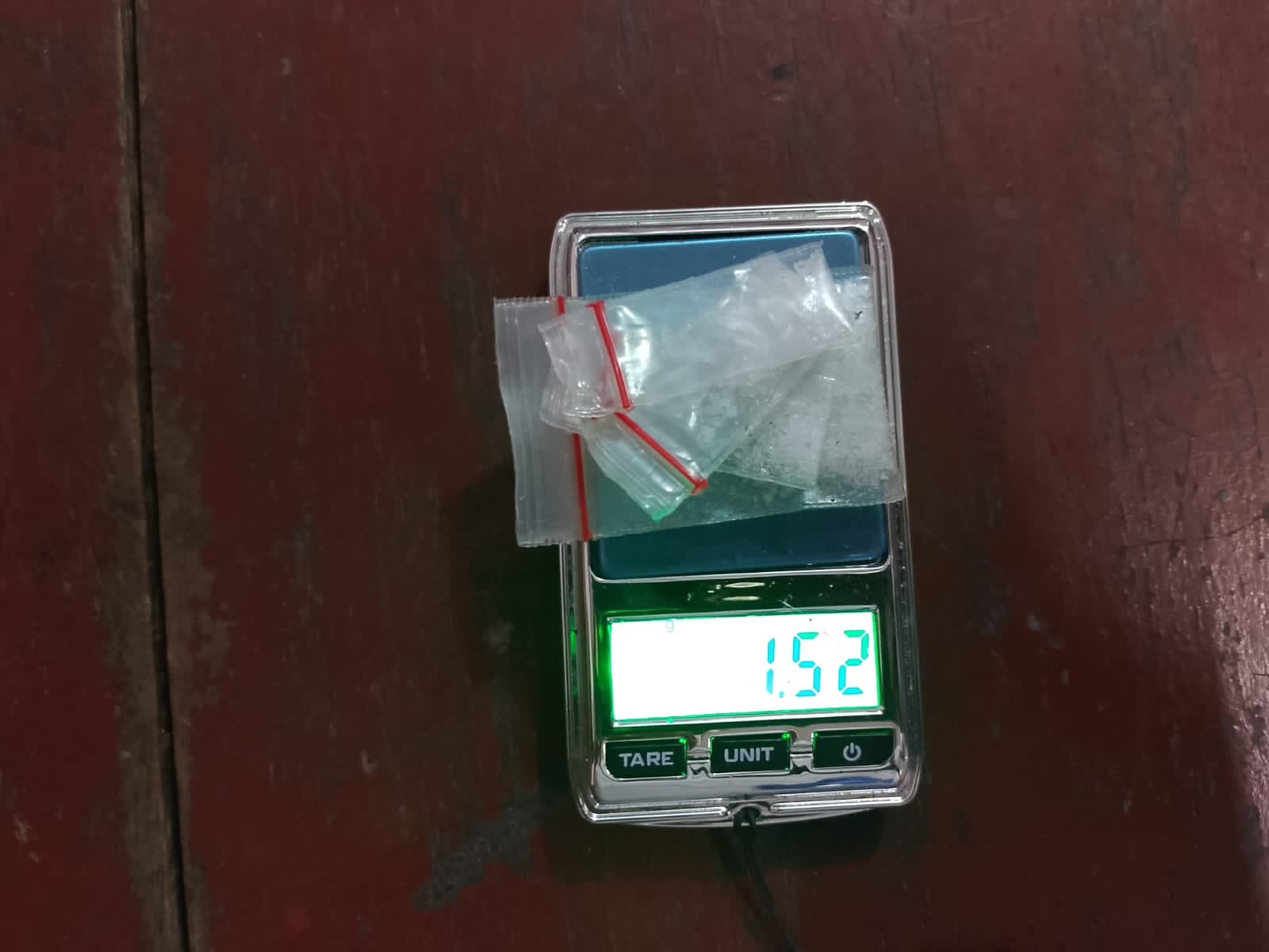 Satu bungkus plastik klip kecil yang berisi diduga narkoba jenis sabu dengan berat bruto 0,23 gram, Satu buah bungkus rokok Sampoerna kecil yang berisikan, Satu bungkus plastik klip sedang yang berisi diduga narkoba jenis sabu dengan berat bruto 1,07 gram, Dua bungkus plastik klip kecil yang berisi diduga narkoba jenis sabu dengan berat bruto 0,25 gram, Dua buah pipet plastik, Satu buah korek api merah, Total keseluruhan narkotika jenis sabu yang berhasil disita memiliki berat bruto 1,52 gram.