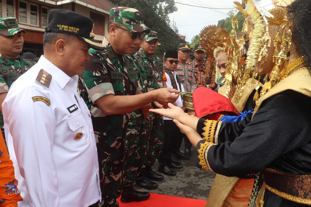 Kehadiran Kasdam di lokasi Posko TMMD, disambut meriah dengan tari Pasambahan dan ucapan selamat datang dari Forkopimda. Setelah itu dilanjutkan paparan Dansatgas, Letkol Arm Bayu Adhitya Nugroho. Ia memastikan, pekerjaan pembukaan jalan, rehab RTLH, pembangunan pipanisasi program TNI Manunggal Air Bersih, rehab MCK dan musholla, serta program penghijauan, seluruhnya akan rampung 100 persen sebelum waktu penutupan pada Kamis, 20 Maret 2025.