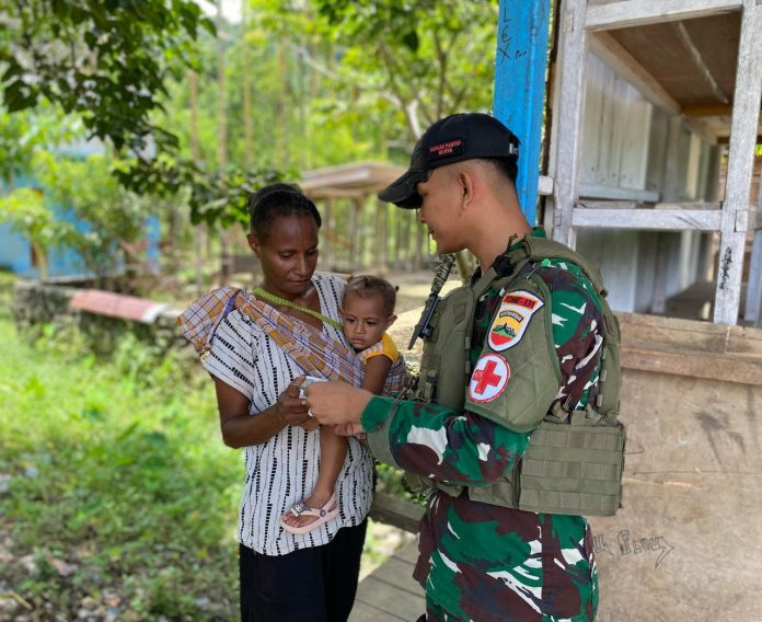 Konspirasi.net | Kab. Keerom – Dalam upaya memastikan kesehatan masyarakat perbatasan, Satgas Pamtas RI-PNG Pos Wembi Satgas Yonif 131/BRS laksanakan patroli kesehatan dengan memberikan Pelayanan Kesehatan di Kampung Wembi, Distrik Mannem, Prov. Papua, Jum’at (21/03/2025).