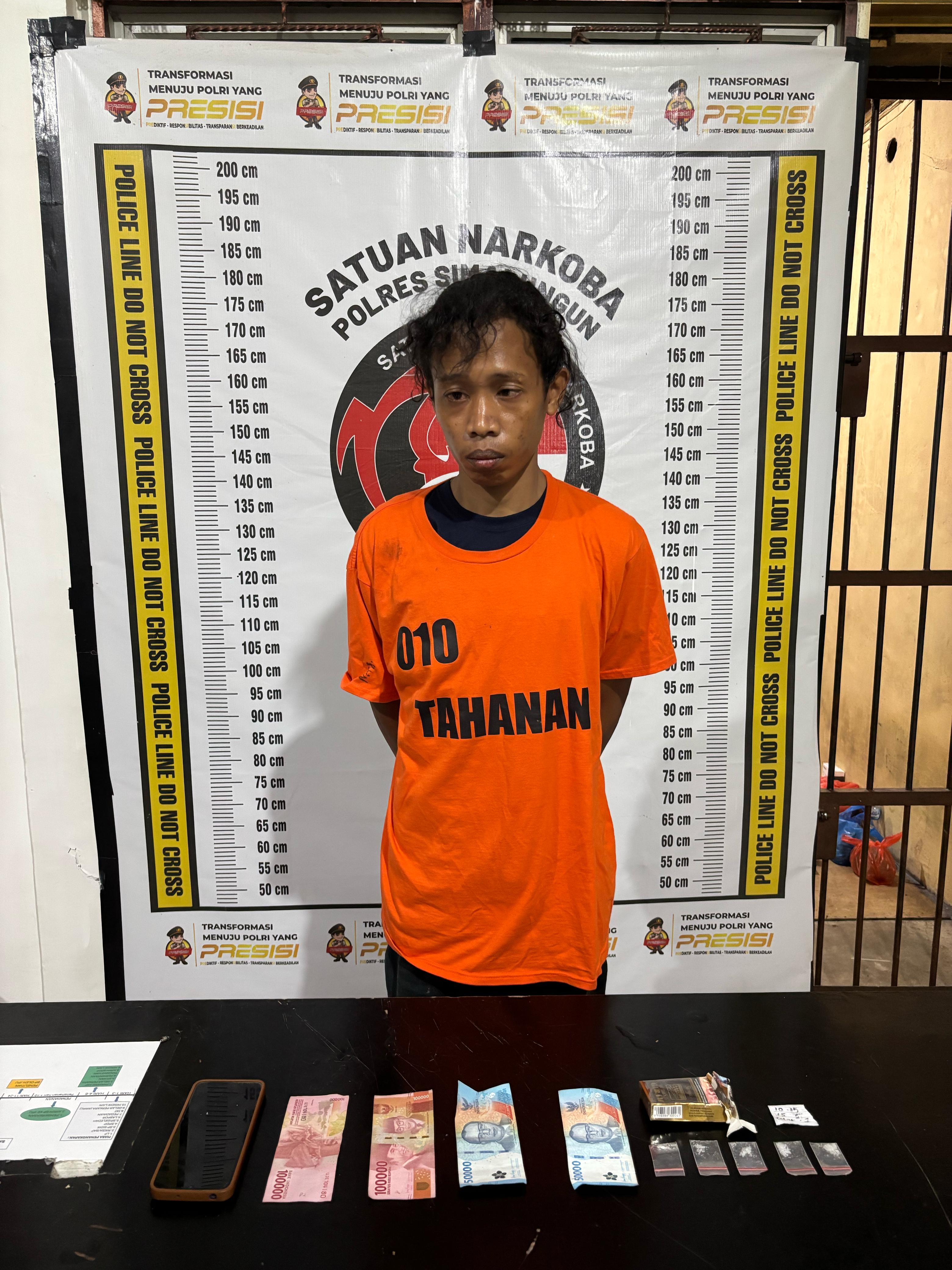 “Mendapat informasi dari masyarakat, Kanit 1 Sat Narkoba Polres Simalungun, IPDA Sugeng Suratman, bersama tim segera melakukan penyelidikan dan penindakan. Saat tiba di lokasi, petugas mendapati seorang laki-laki yang kemudian diketahui bernama Roy Saputra. Setelah dilakukan penggeledahan, ditemukan lima bungkus plastik klip berukuran sedang berisi narkotika jenis sabu dengan berat bruto 1,55 gram, satu unit handphone merk Redmi, sebuah kotak rokok yang digunakan untuk menyimpan sabu, serta uang tunai sebesar Rp 300.000 yang diduga hasil transaksi narkotika,” ujar AKP Verry Purba.