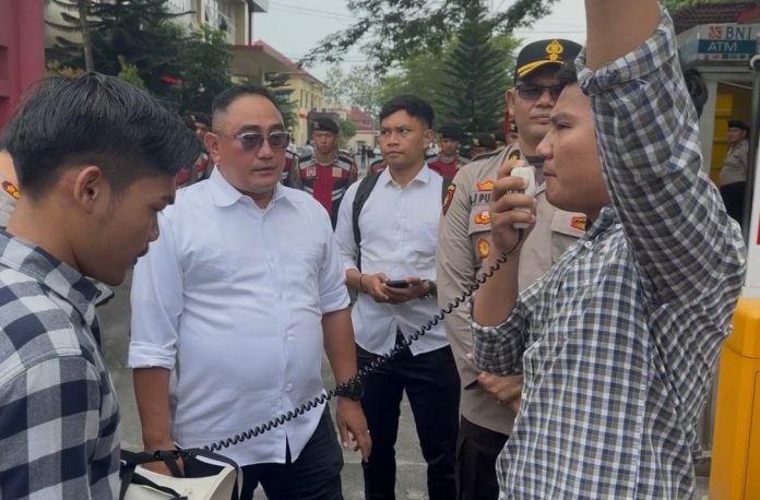 Dalam kesempatan itu, Mahdayan Tanjung meminta kepastian mengenai proses penegakan hukum dan tindaklanjut dari tuntutan yang telah dilayangkan dan ditanggapi langsung oleh Perwira Menengah Pengawas (Pamenwas).