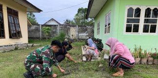 Ciptakan Lingkungan Bersih dan Asri, Satgas Yonif 131/BRS Bersama Masyarakat Gotong...
