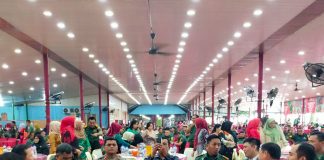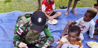 Makan Siang Bersama Masyarakat, Satgas Yonif 131/Brajasakti Wujudkan Kemanunggalan TNI dengan...
